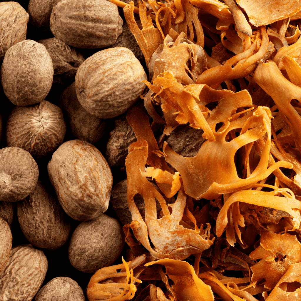 Nutmeg mace is the reddish outer covering of the nutmeg seed, offering a similar but more delicate flavor than nutmeg itself.